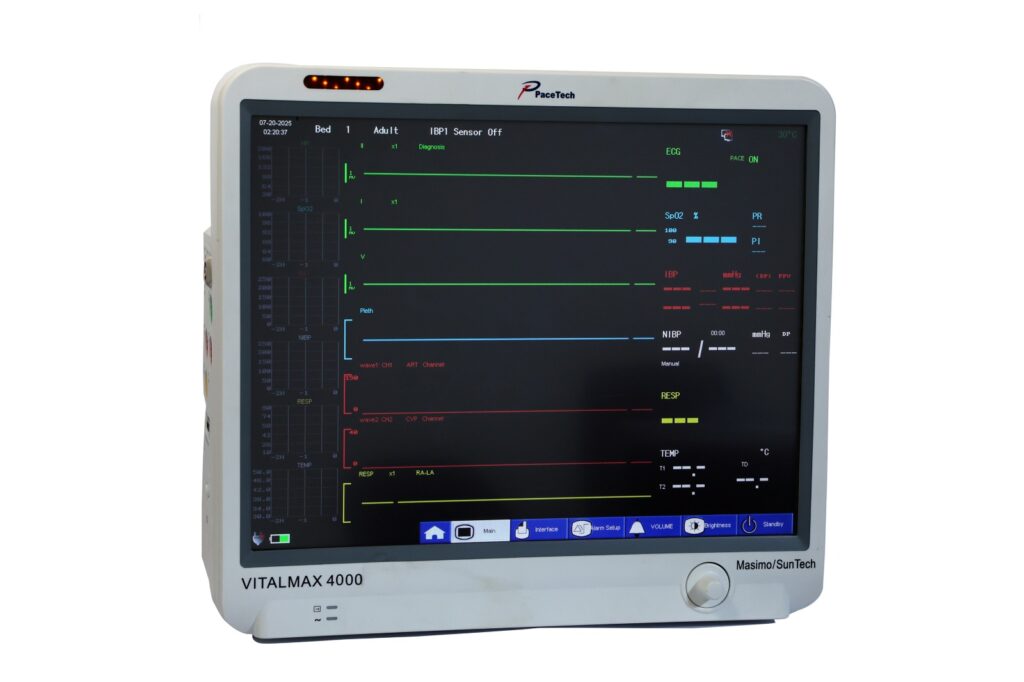 VitalMax 4000 with 12-inch touch screen, supporting optional EtCO₂ and Dual IBP monitoring for advanced patient care.