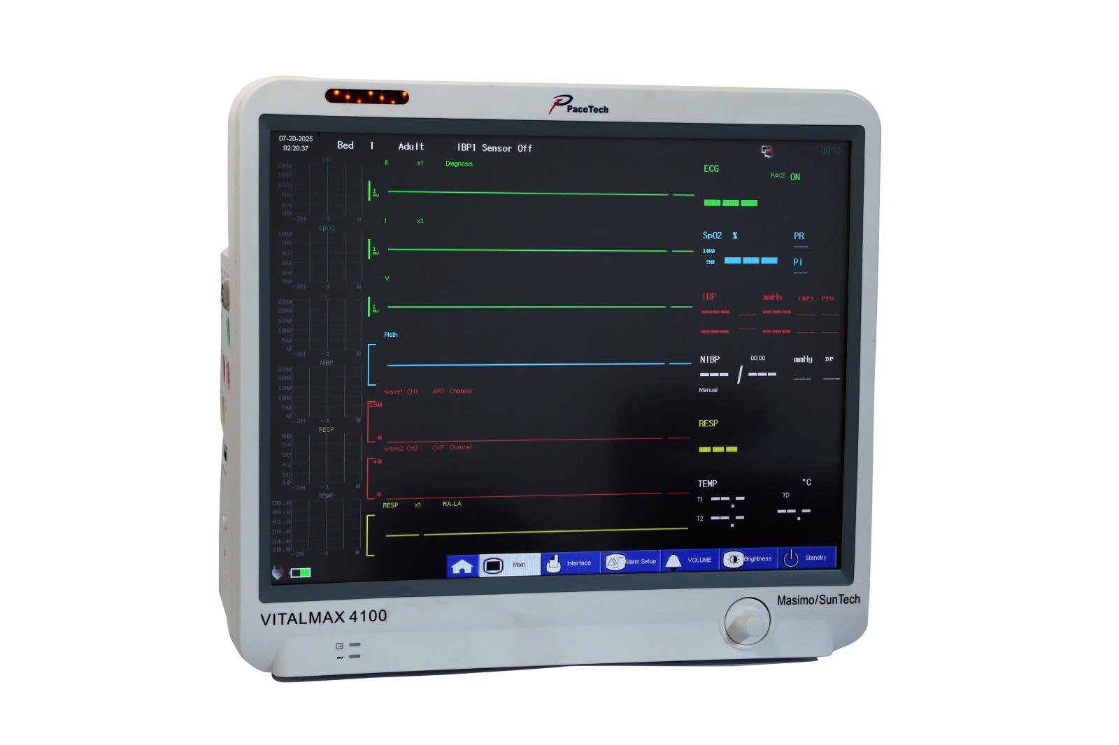 The VitalMax 4100 VET is a premium veterinary patient monitor that delivers comprehensive, real-time monitoring with exceptional accuracy, versatility, and ergonomic design. Its 15-inch touchscreen, combined with optional EtCO₂, Dual IBP, anesthetic monitoring, and 12-lead ECG, makes it ideal for modern veterinary hospitals, surgical suites, and critical care settings.